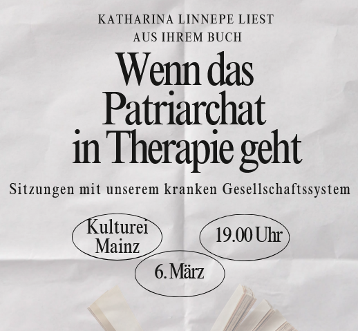Passend zum feministischen Kampftag liest Katharina Linnepe aus ihrem Buch über die wahren Ursachen mentaler Probleme und zeigt, wie wir einem erstarkenden Patriarchat entgegenwirken können. Sie entlarvt die absurdesten Verhaltensstörungen, Glaubens-sätze und Denkmuster unseres Gesellschaftssystems. Kritisch, lehrreich und urkomisch.
